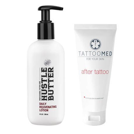 - Ziedes & Vazelīns: Izvēlieties no dažādām ziedēm, kas paredzētas mitruma saglabāšanai un dziedināšanas veicināšanai. Inkeeze Pink Rose Tetovējumu Ziede un Otzi Tetovējumu Krēms ir lieliskas izvēles ādas veselības uzturēšanai.