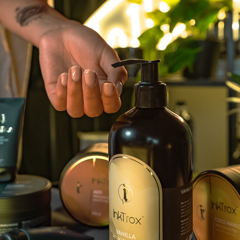 InkTrox Vanilla apvieno profesionālas kvalitātes kopšanu ar maigu sajūtu baudījumu. Tā ne taukainā mitrināšana uztur tetovējumus dzīvīgus un ādu zīdaini gludu, kamēr siltais vaniļas aromāts pārvērš ādas kopšanu par ikdienas komforta rituālu. Ideāla izvēle ikvienam, kurš novērtē ilgstošu tetovējuma skaistumu un greznu pašaprūpi.