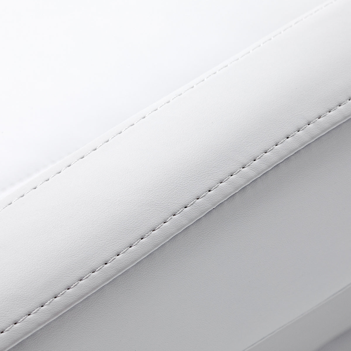 Krēsla cietā konstrukcija nodrošina stabilitāti un izturību ikdienas lietošanas laikā. Sēdeklis ir piepildīts ar rūpīgi izvēlētas cietības putām, nodrošinot komfortu pat ilgstošu procedūru laikā. Augstas kvalitātes, patīkami pieskārienam sintētiskās ādas apdare baltā toņos piešķir krēslam profesionālu izskatu un ir mitrumizturīga un viegli tīrāma. Izturīgā pamatne nodrošina stabilitāti, savukārt precīzie apdares elementi izceļ krēsla mūsdienīgo raksturu un uzlabo sēdekļa ergonomiku.