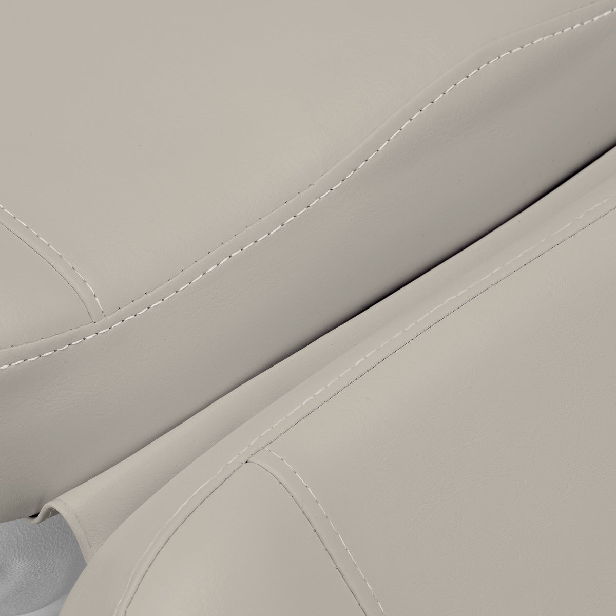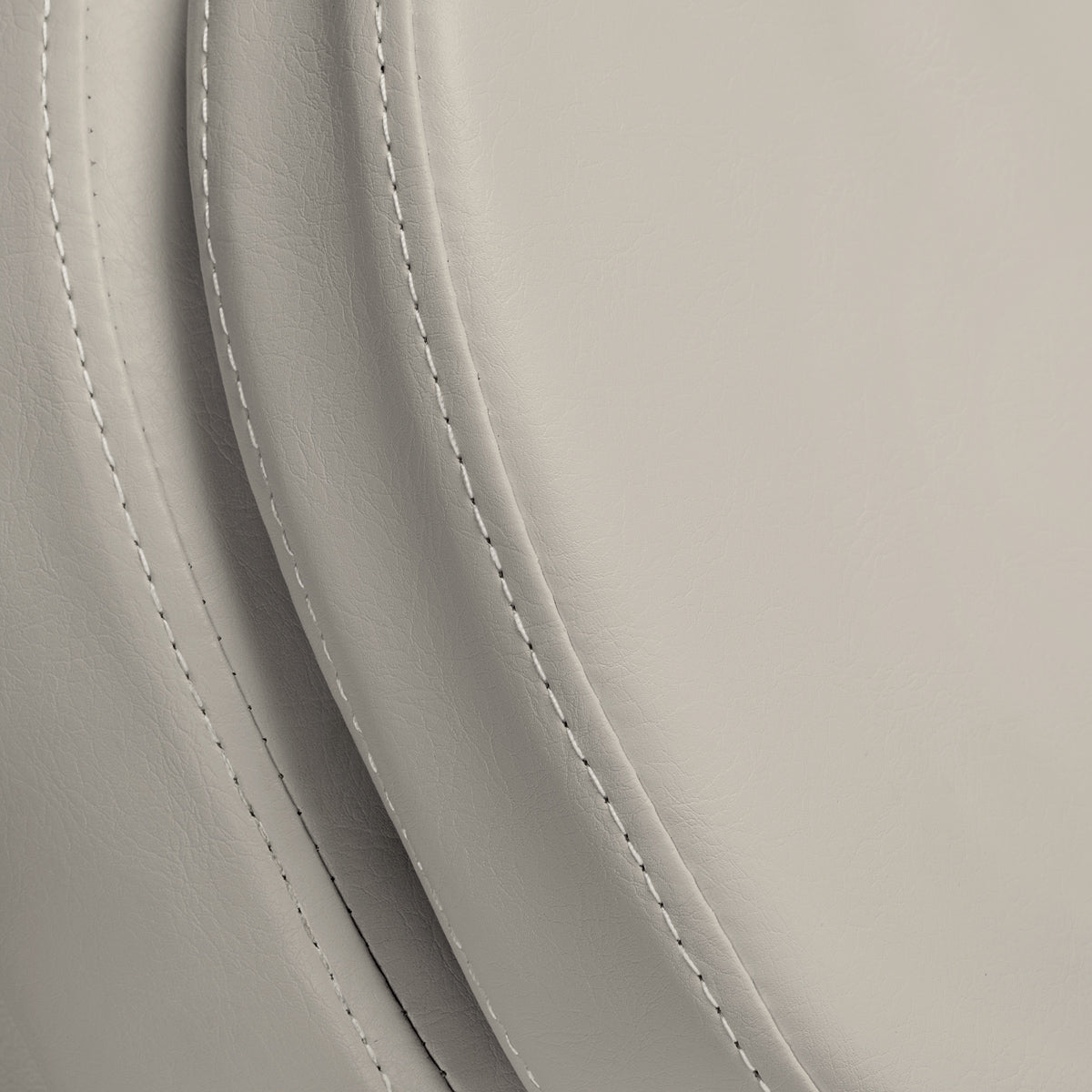 Krēsls ir pildīts ar konturētu putu materiālu un pārklāts ar patīkamu pieskārienam sintētisko ādu bēša toņos. Izmantotais materiāls padara aprīkojumu vieglāk tīrāmu, kā arī izturīgu pret mitrumu un izvēlētiem dezinfekcijas līdzekļiem. Ciets pamats no izturīga materiāla baltos toņos nodrošina stabilitāti procedūru laikā. Pareizi profilētie maliņas piešķir krēslam stilīgu izskatu un padara sēdekli ergonomisku. Minimālistisks, vienkāršs dizains un klasiskas krāsas ļauj tam iederēties jebkurā interjerā.