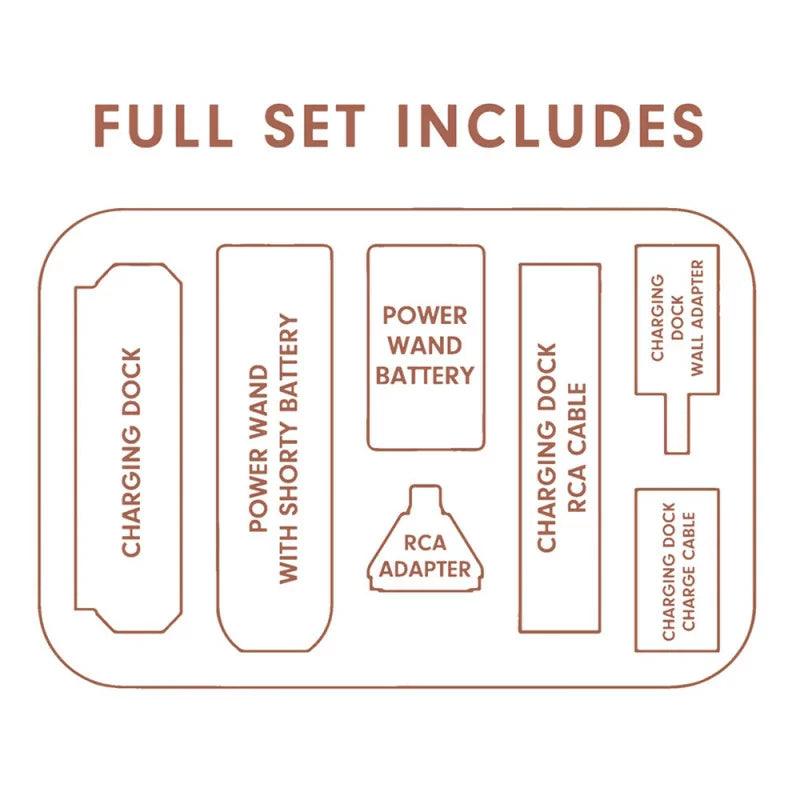 Power Wand RCA adapteris un 2m RCA vads ļauj izmantot vadu režīmā, kad nepieciešams, nodrošinot daudzpusību un uzticamību jebkurā vidē. -