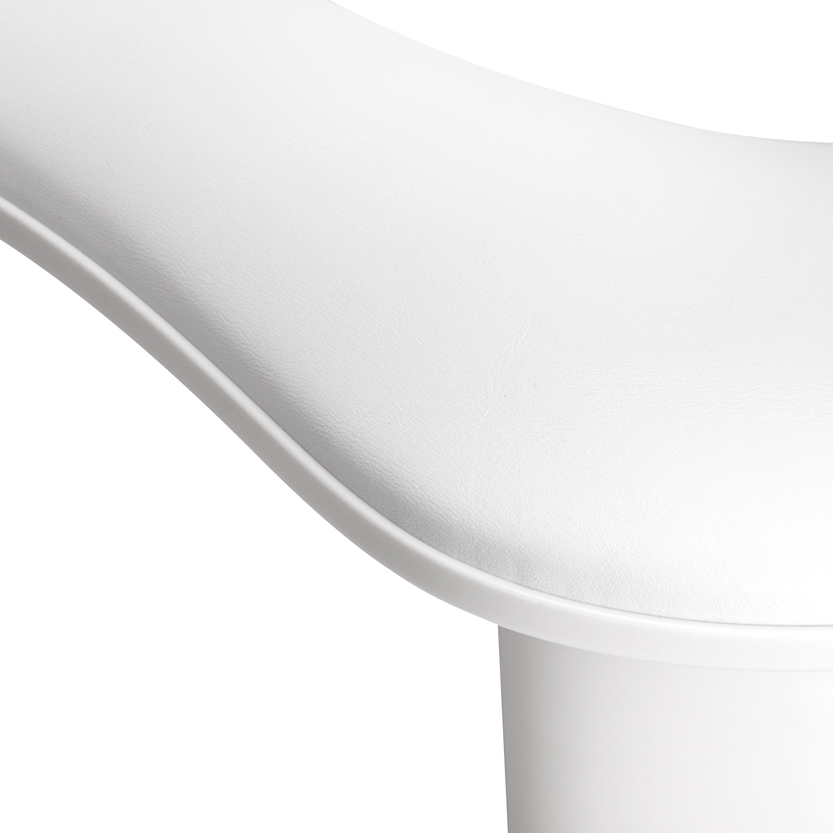 Momo Croissant atbalsta statīvs ir izgatavots no augstas kvalitātes materiāliem, kas nodrošina tā izturību un vieglu kopšanu. Mīksts spilvens, kas pārklāts ar sintētisko ādu, nodrošina klientiem pilnīgu komfortu procedūras laikā, un ciets plastmasas rāmis palielina konstrukcijas izturību. Papildus tam silikona elementi uz kājām novērš statīva slīdēšanu un aizsargā virsmu no skrāpējumiem, nodrošinot stabilitāti.