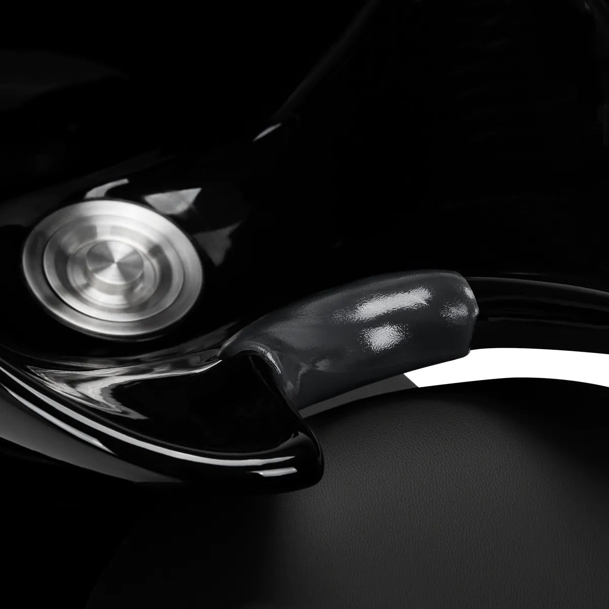 Pareizi profilēts krēsls, kas piepildīts ar izturīgu putu materiālu, nodrošina augstu lietošanas komfortu, un elegantas roku balsti ļauj pareizi novietot klienta plecus. Atzveltne ir novietota optimālā leņķī, lai ļautu ieņemt pareizu pozīciju un veicinātu izcilu mugurkaula atbalstu. Apdare melno toņu krāsās un dekoratīvas metāla virsmas, pārklātas ar zelta krāsas laku, piešķir tai laika pārbaudi izturīgu eleganci un papildus garantē ilgmūžību un vieglu kopšanu. Raksturīgā frizieru mazgāšanas vienības klasiskā apdare padara to lieliski piemērotu gandrīz jebkurā telpā. Komplektā ietilpst pilnīgas melno toņu krāsas iekārtas, tostarp jaucējkrāns, dušas galva un speciālas šļūtenes, kas nodrošina pilnu darba rīku komplektu.