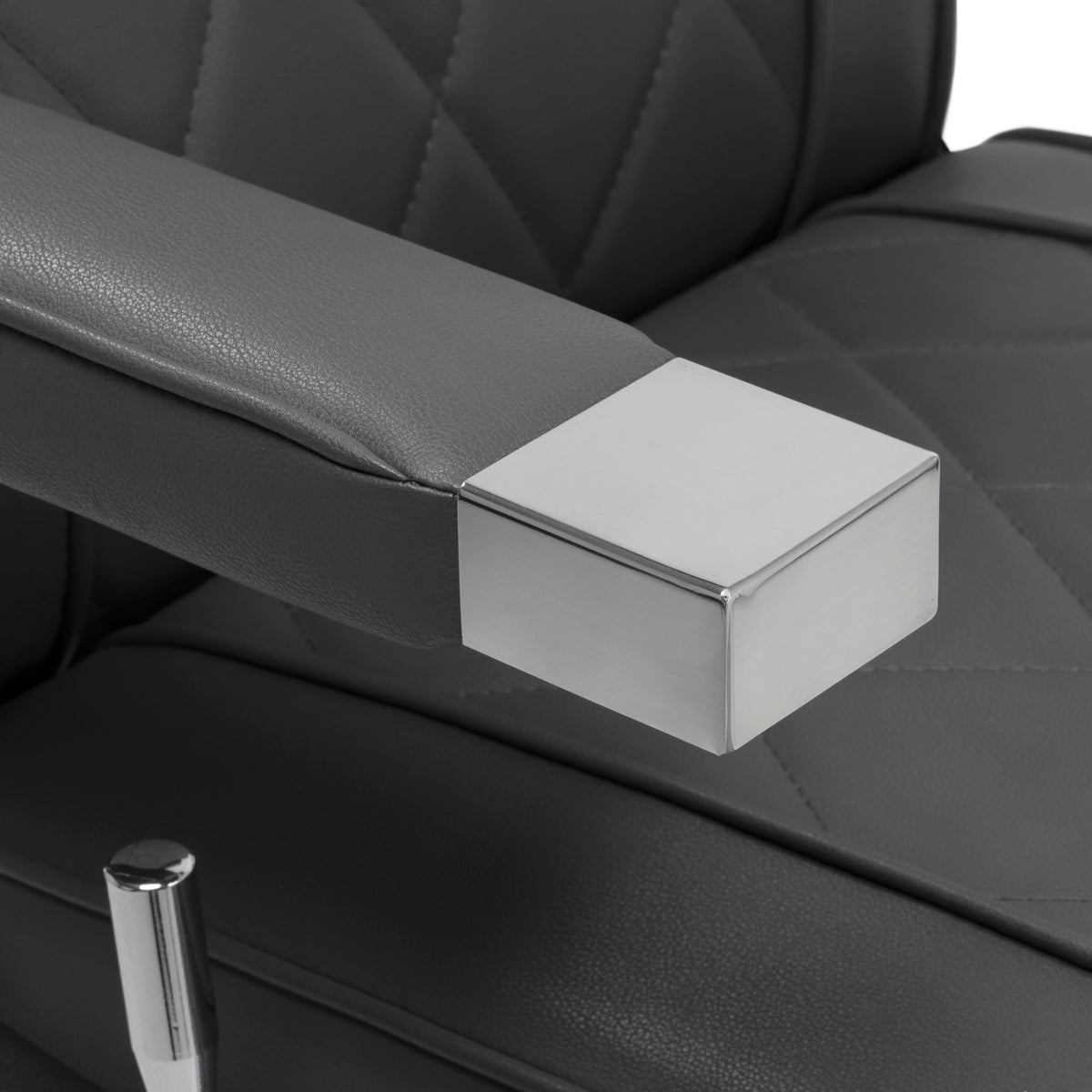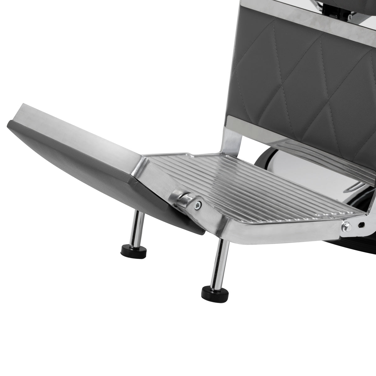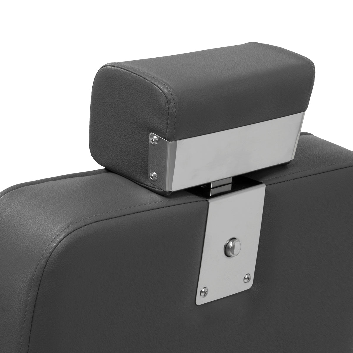 Krēsla cietā apaļā pamatnes konstrukcija nodrošina stabilitāti un izcilu lietotāja komfortu. Sēdekļa pildījums, izgatavots no deformācijizturīgas putas, un apdare no mīkstas pieskāriena sintētiskās ādas ar matētu virsmu nodrošina ilgmūžību un komfortu ilgstošas lietošanas laikā. Stilīgas šuves uz apdares piešķir raksturu, iedvesmojoties no automobiļu dizaina, kas uzlabo tā eleganto izskatu. Šī īpašība arī padara krēslu mitrumizturīgu, izturīgu un viegli tīrāmu. Apdare pelēkās toņos piešķir krēslam unikālu raksturu, un tā minimālistiskais stils ļauj tam nevainojami saplūst ar jebkuras frizētavas interjeru.
