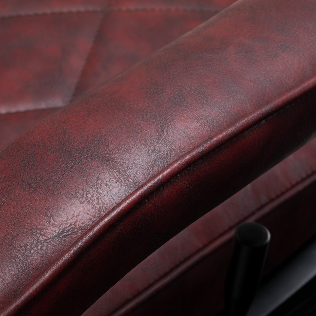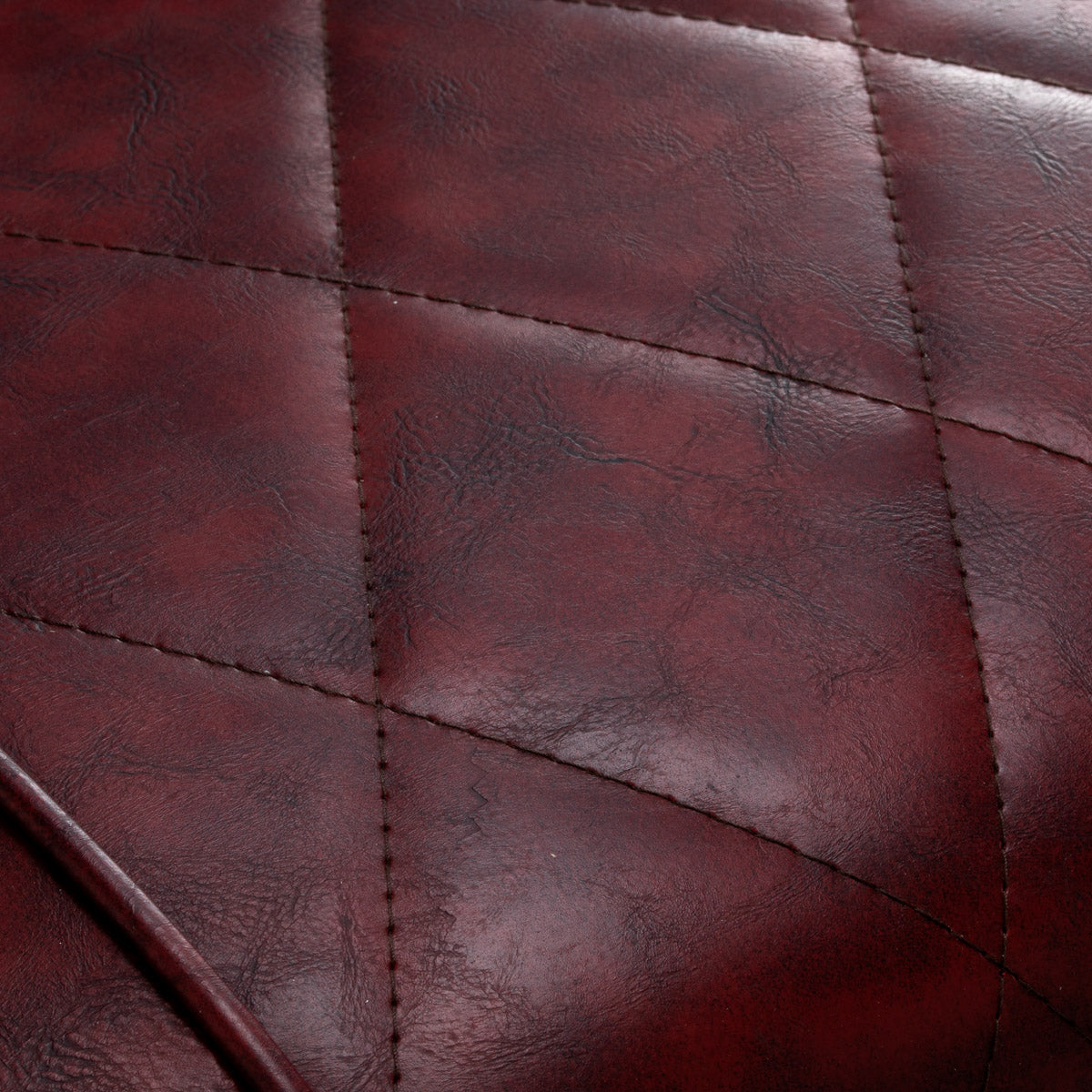 Krēsla cietā apaļā pamatnes konstrukcija nodrošina stabilitāti un izcilu lietotāja komfortu. Sēdekļa pildījums, kas izgatavots no deformācijizturīgas putas, un apdare no mīkstas sintētiskās ādas ar matētu virsmu nodrošina ilgmūžību un komfortu ilgstošas lietošanas laikā. Stilīgas šuves uz apdares piešķir raksturu, iedvesmojoties no automobiļu dizaina, kas uzlabo tā eleganto izskatu. Šī īpašība arī padara krēslu mitrumizturīgu, izturīgu un viegli tīrāmu. Apdare bordo toņos piešķir krēslam unikālu raksturu, un tā minimālistiskais stils ļauj tam nevainojami saplūst ar jebkuras frizētavas interjeru.