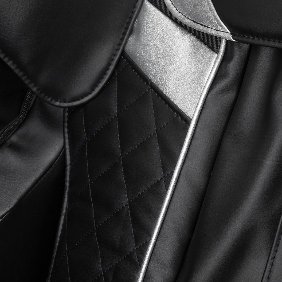 Mīksts, patīkams pieskārienam mākslīgās ādas pārklājums melnās krāsas toņos nodrošina augstu lietošanas komfortu un vieglu kopšanu. Materiāls ir estētisks, izturīgs pret mitrumu un praktisks ikdienas lietošanā. Ārējās sudraba detaļas, apvienojumā ar strukturētu apdari melnās krāsas toņos, piešķir krēslam mūsdienīgu, stilīgu raksturu. Kompaktais formāts un nomierinošās krāsas padara modeli ideāli piemērotu dažādiem interjera dizainiem. Sakura Prime 101 ir ideāla izvēle cilvēkiem, kuri meklē ikdienas relaksāciju – gan pēc intensīvas dienas, gan pēc paaugstinātas fiziskās slodzes.