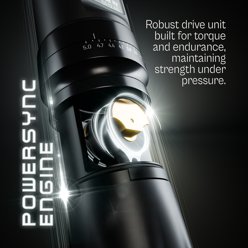 The Enduro2 piedāvā nepārtraukti regulējamu trieciens diapazonu no 2.5 mm līdz 5.0 mm, ļaujot māksliniekiem sekundēs precīzi noregulēt trieciens dziļumu - bez pauzēm vai mašīnu maiņas.