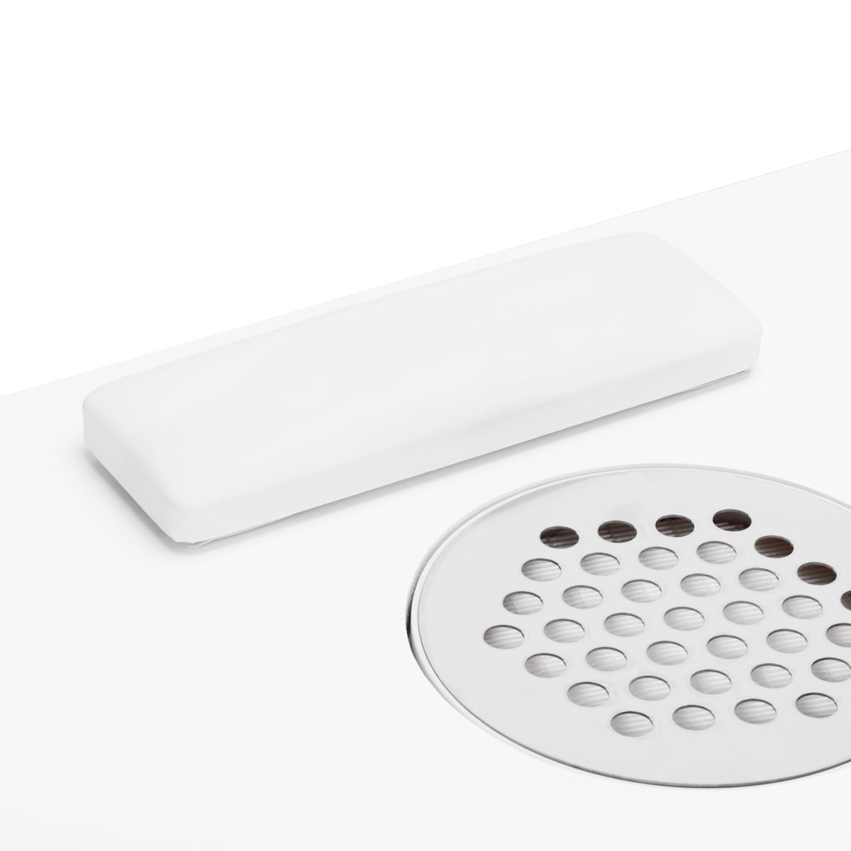 Inovatīvais kasetveida putekļu nosūcējs, kas iebūvēts galda virsmā, būtiski uzlabo darba komfortu un higiēnu, efektīvi novāc putekļus, kas rodas kosmētisko procedūru laikā, piemēram, manikīra laikā. Pateicoties šai ierīcei, salons gaisa kvalitāte saglabājas tīra, un darba vieta ir brīva no piesārņojuma, kas palielina drošību gan skaistumkopējam, gan klientiem. Putekļu savācējs ir viegls lietošanā un uzturēšanā, kas vēl vairāk palielina tā funkcionalitāti. Ir iespējams iegādāties rezerves kasetveida filtru nosūcējam (SKU 132085).