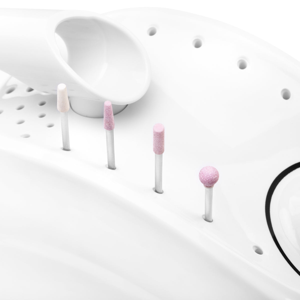 Kastē iekļauts urbju komplekts (bez maksas). Tas nozīmē, ka varat uzreiz sākt strādāt ar šo nagu urbja mašīnu. Varat to izmantot mājās vai savā skaistumkopšanas salonā.