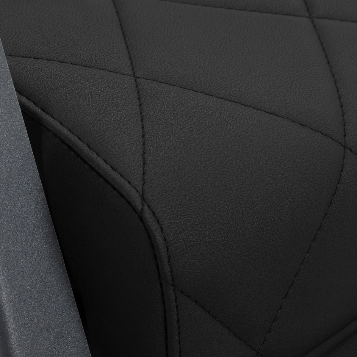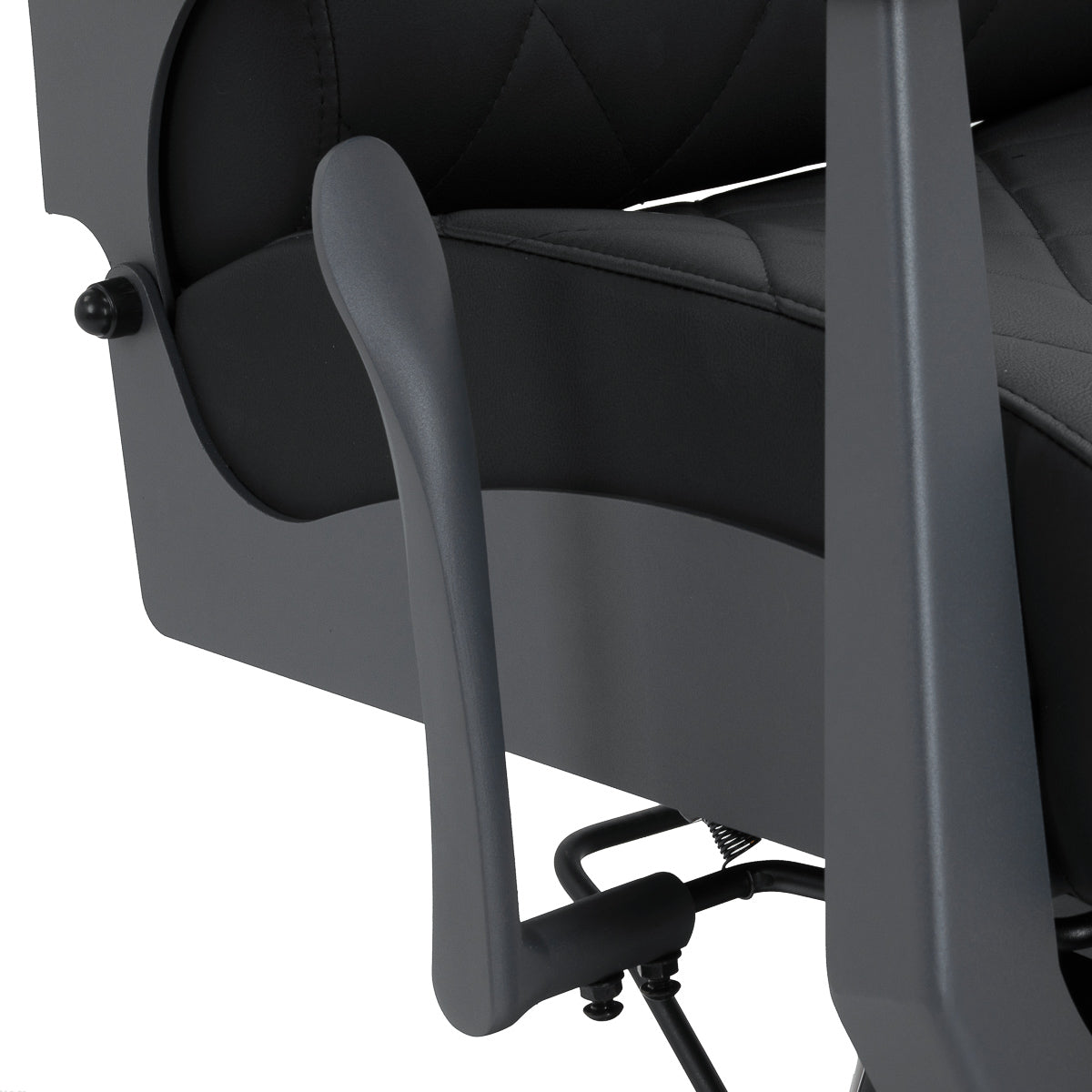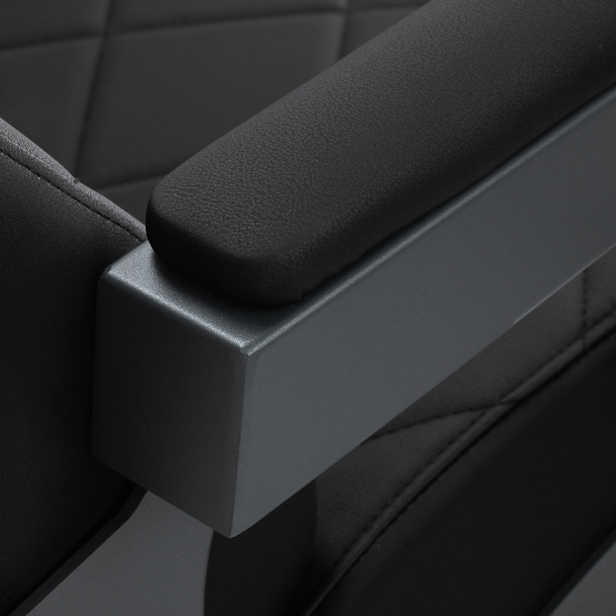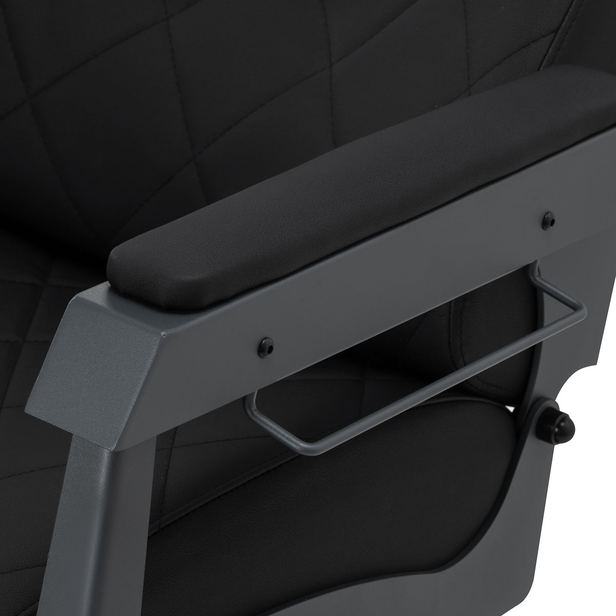 Stabilā konstrukcija nodrošina drošību un ilgmūžību. Sēdeklis, pildīts ar deformācijizturīgu putu materiālu, un apdare no mīkstas sintētiskās ādas nodrošina izturību un komfortu. Mitrumizturīgie materiāli ir ne tikai izturīgi, bet arī viegli tīrāmi. Melnais apšuvums kopā ar grafīta rāmi piešķir krēslam mūsdienīgu un profesionālu izskatu, savukārt tā minimālistiskais stils ļauj to iekļaut jebkura frizētavas interjerā.
