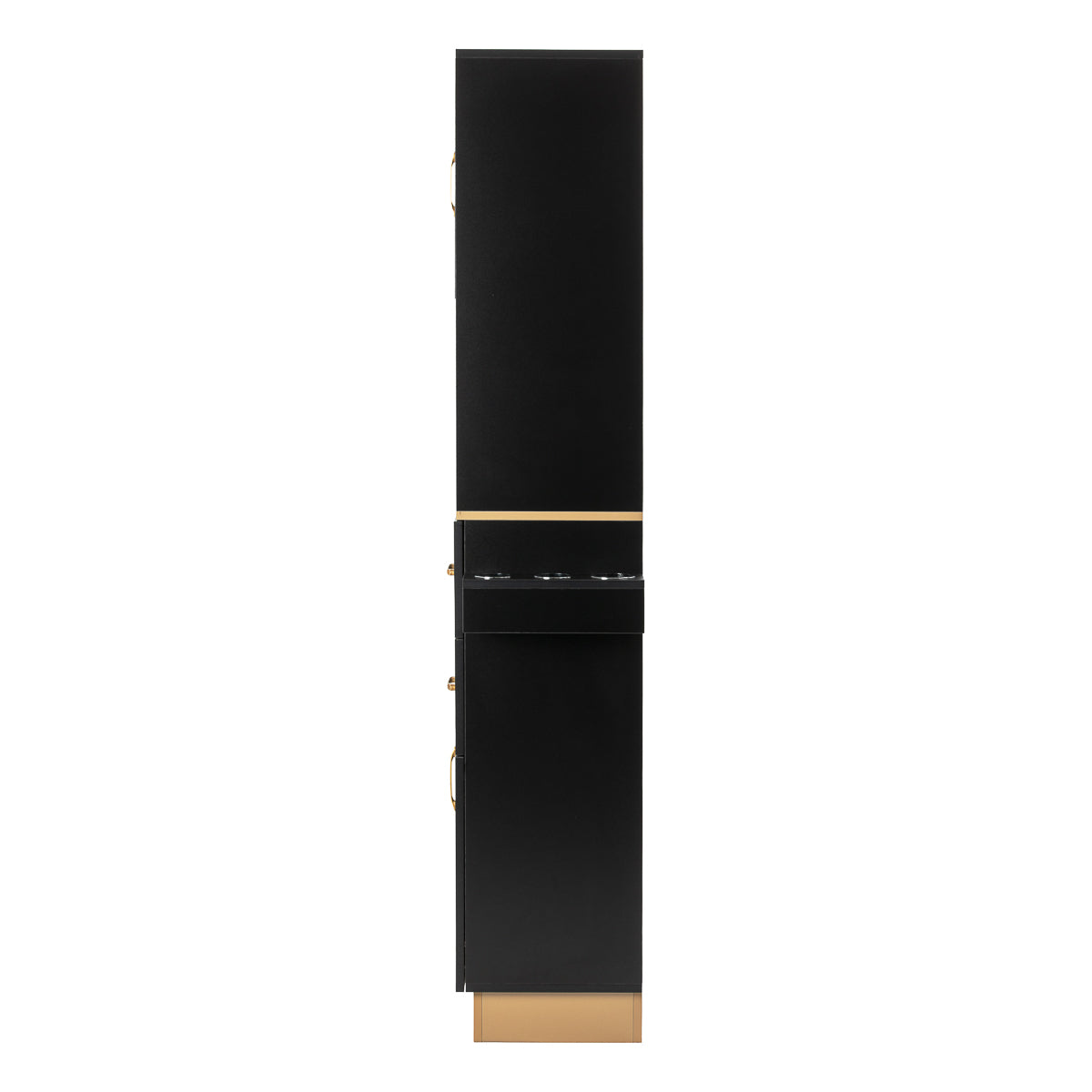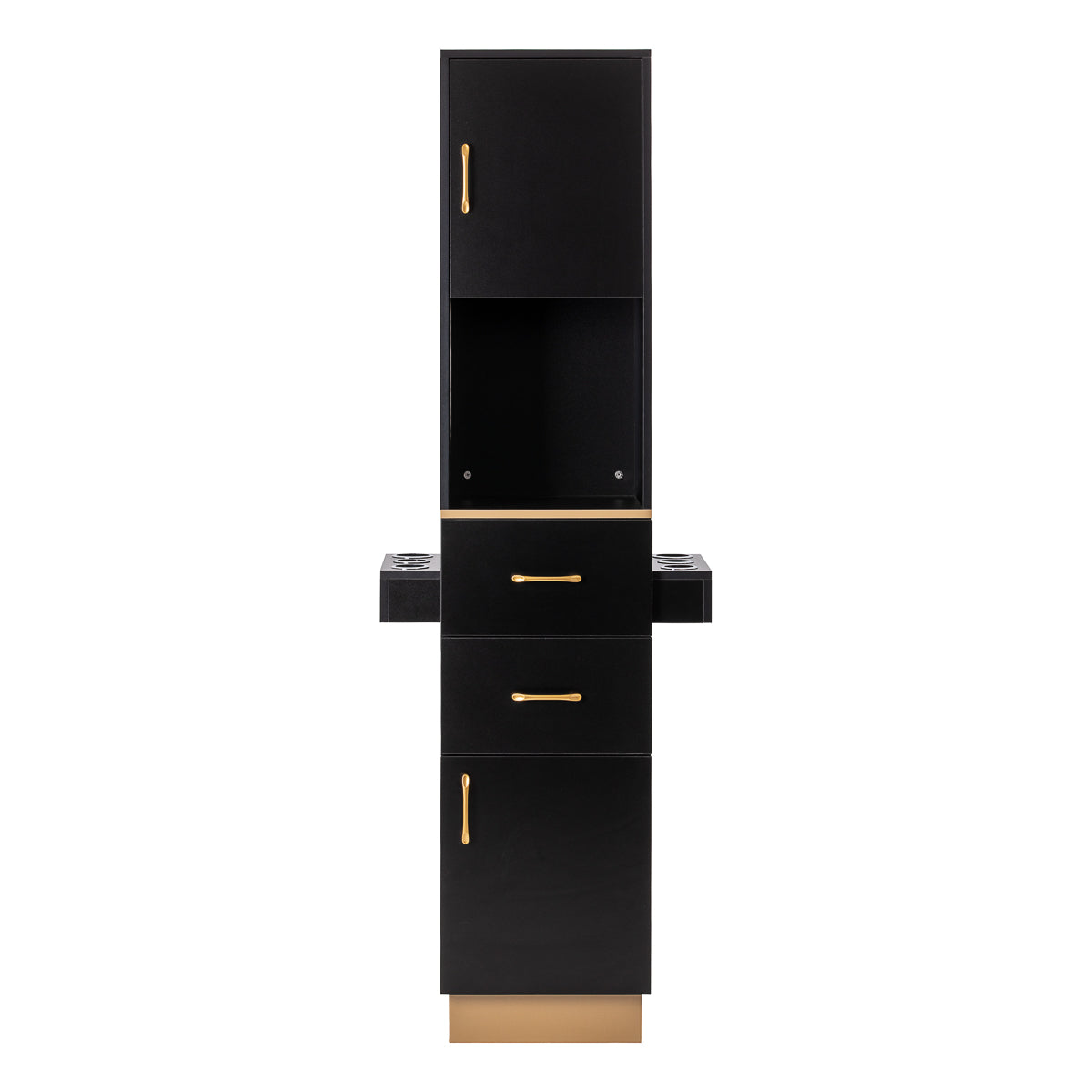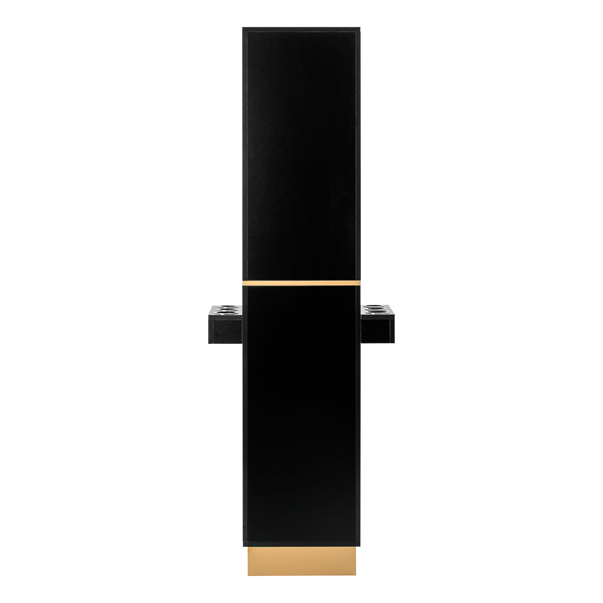 Gabbiano Totem frizieru stacija ir funkcionāls aprīkojuma elements, izstrādāts, ņemot vērā ergonomiku un kārtīgu, organizētu darba vietu. Šis modelis uzsver profesionālu interjera raksturu un atbalsta efektīvu darba vietas organizāciju. Minimālistiskā forma, apdarināta melnās krāsas toņos ar zelta akcentiem, piešķir vienībai elegantu un greznu izskatu, kas lieliski iederas mūsdienīgu frizieru salonu un bārdnieku interjeros.