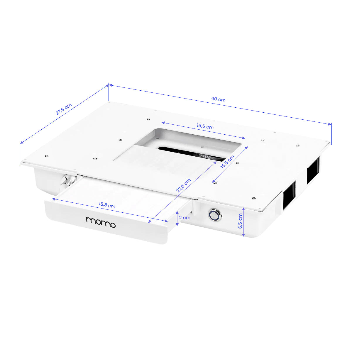 Momo J-02 kasetveida putekļu savācējs, kas iebūvēts darba virsmā, ievērojami uzlabo darba komfortu un higiēnu, efektīvi noņemot putekļus, kas rodas skaistumkopšanas procedūru laikā, piemēram, manikīra laikā. Pateicoties šai ierīcei, salons gaisa kvalitāte paliek tīra un darba vieta brīva no piesārņojuma, kas palielina gan skaistumkopēja, gan klientu drošību. Putekļu savācējs ir viegls lietošanā un uzturēšanā, kas papildus uzlabo tā funkcionalitāti. Regulāra tīrīšana un filtru nomaiņa nodrošina pastāvīgi augstu absorbcijas efektivitāti. Ir iespējams iegādāties papildu rezerves filtrus (SKU 123581).