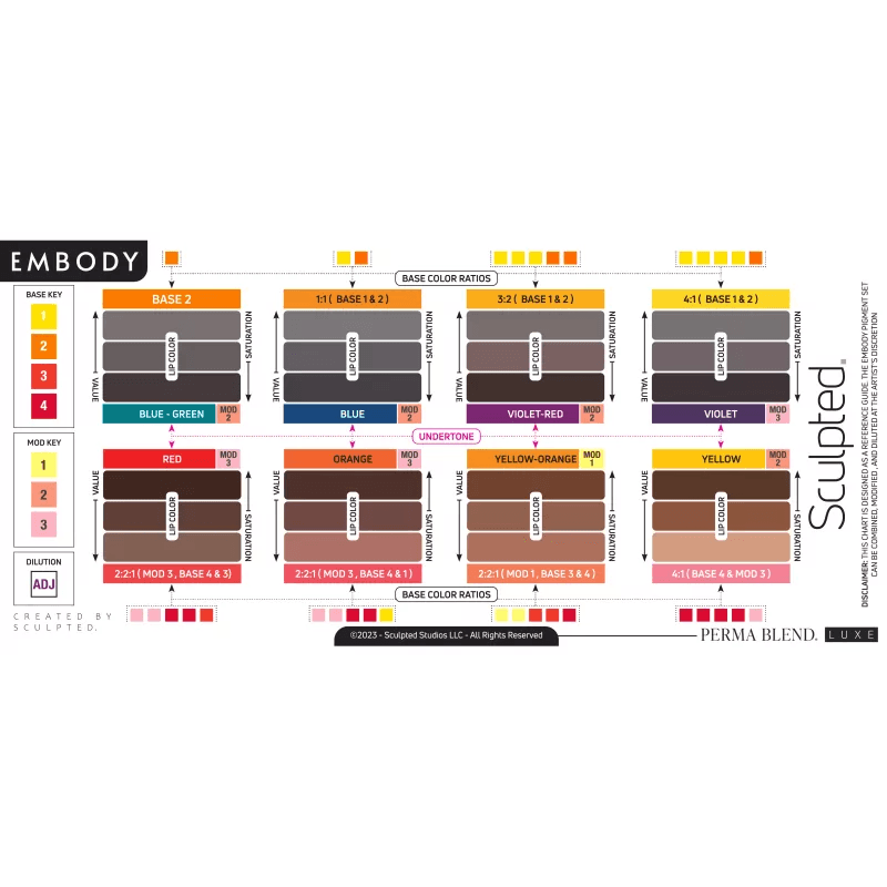 Embody komplekts, ko izstrādājusi slavena Sculpted Studio īpašniece Carla Ricciardone. Šī izcila astoņu pastāvīgo grima tinti kolekcija ir īpaši izstrādāta vēsām un tumšām lūpām, ļaujot nevainojami sajaukt ar dabīgo audu un uzlabotu neitralizāciju.