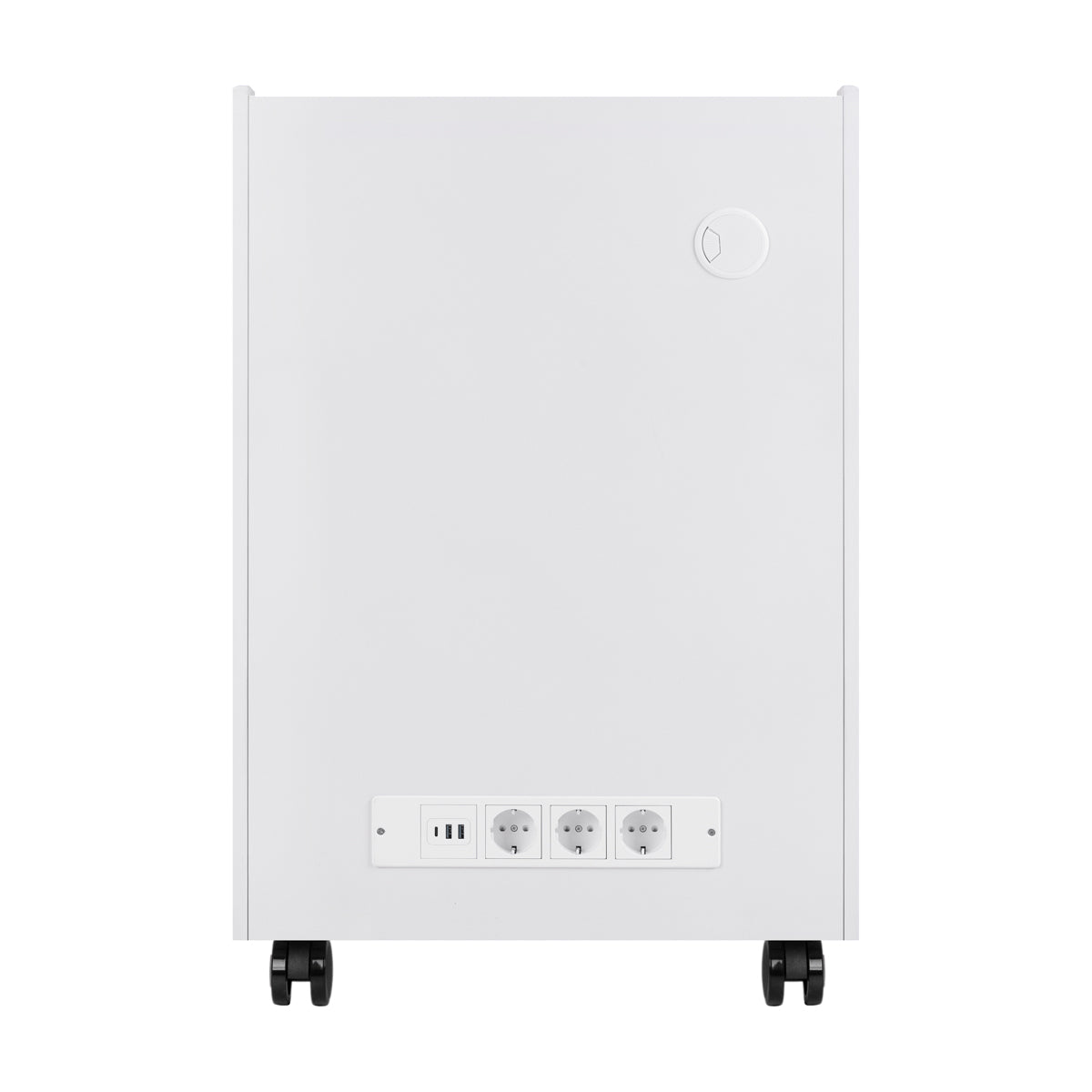 Praktiskie riteņi atvieglo gludu skapja pārvietošanu. Vienkāršā, minimālistiskā forma baltā krāsā piešķir mēbelēm universālu, profesionālu izskatu, kas labi iederas mūsdienu interjeros. Dizains, radīts, domājot par pēdu aprūpes speciālistiem, nodrošina īpašu vietu pēdu urbjmašīnai un svarīgākajiem piederumiem, veicinot ērtu un ergonomisku darbu procedūru laikā.