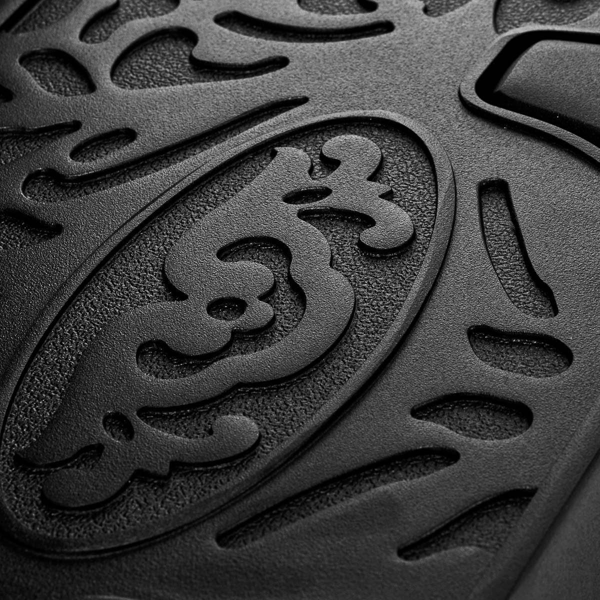 Прочная конструкция основания обеспечивает устойчивость и высокий комфорт использования. Наполнитель сиденья выполнен из прочной, устойчивой к деформации пены, а обивка — из приятной на ощупь синтетической кожи с полуматовой отделкой, что гарантирует долговечность мебели и комфортное использование на протяжении длительного времени. Они также делают оборудование устойчивым к влаге, прочным и легким в уходе. Обивка в коричневых оттенках с прострочкой и декоративными пуговицами придает уникальный характер. Кресло с характерным дизайном, отсылающим к винтажному стилю, прекрасно вписывается в атмосферу барбершопов, подчеркивая их уникальную атмосферу.