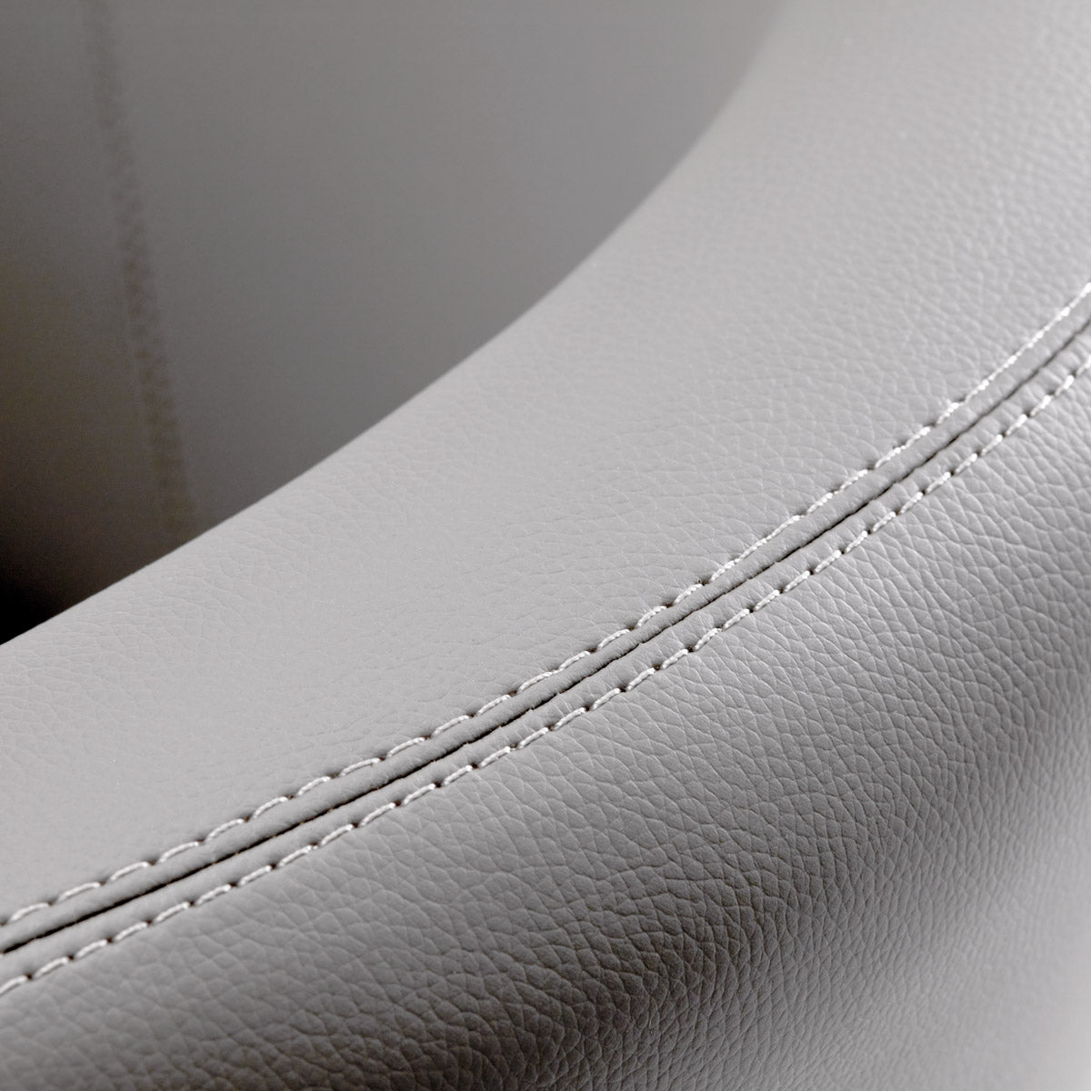 Кресло наполнено пеной, которая прочная и не деформируется, обеспечивая комфортное использование в течение длительного времени. Обивка выполнена из приятной на ощупь искусственной кожи со специфической структурой. Благодаря использованию такого материала оборудование устойчиво к влаге, долговечно и легко очищается. Покрытие в оттенках серого и декоративные элементы серебристого цвета придают ему выражение вечной элегантности. Его характерная классическая отделка отлично смотрится практически в любом пространстве.