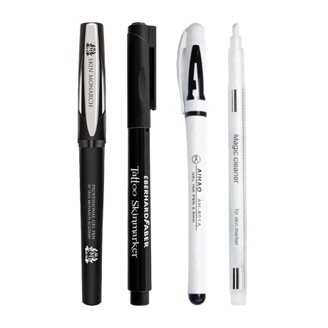 Маркерные ручки для кожи, такие как White Outline Pen и Skin Monarch Gel Sketch Pen (Black/Red), обеспечивают чёткие, видимые линии, которые не смазываются во время разметки и бережны к коже. Эти маркеры идеально подходят для создания точных направляющих, которые не размазываются и не тускнеют в ходе процедуры.