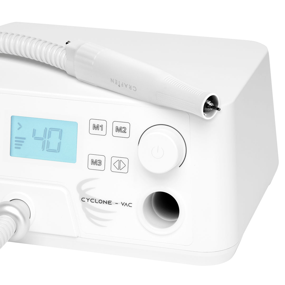 Адекватная защита лёгких — ключ к ответственной и безопасной работе подиатра и поддержанию высоких стандартов гигиены в кабинете. Высокая мощность всасывания устройства делает его идеальным для поглощения любой пыли, образующейся во время процедур. Также возможно регулировать всасывание на пяти уровнях и при необходимости полностью отключать эту функцию.