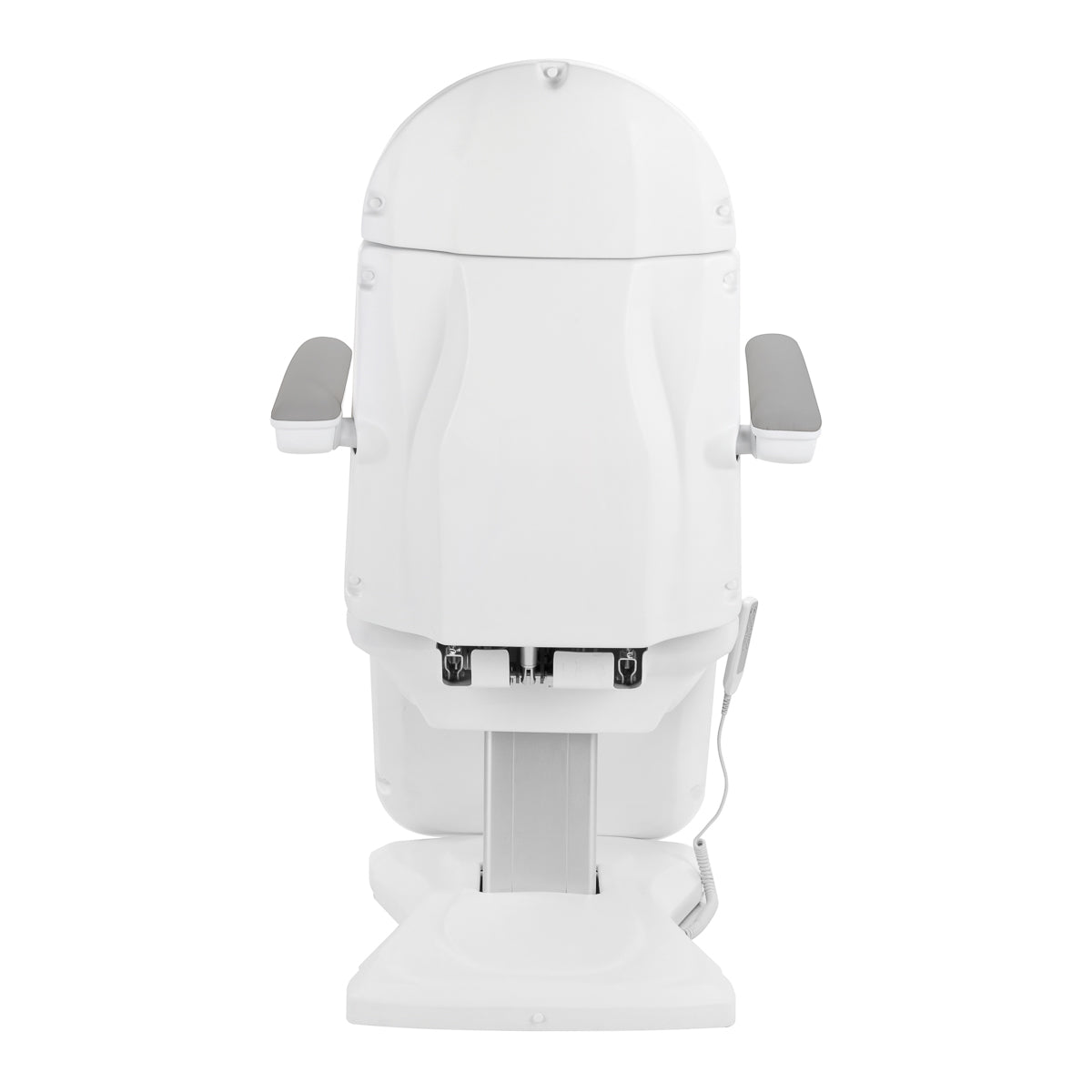 Подголовник, который можно удлинить на 20 см, позволяет настроить кресло под рост пользователя, обеспечивая стабильную поддержку головы во время процедур. Подвижные подлокотники, которые можно поворачивать на 180°, облегчают посадку и обеспечивают удобный доступ для специалиста. Их также можно легко снять при необходимости. Эти функции повышают комфорт пользователя и поддерживают эргономичную организацию работы.