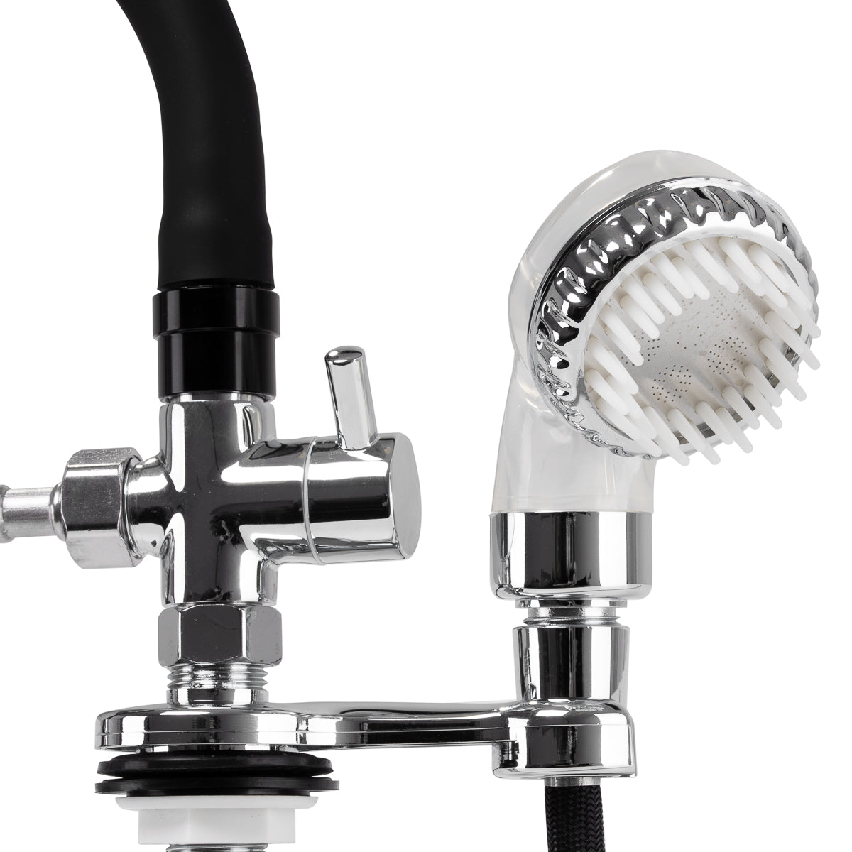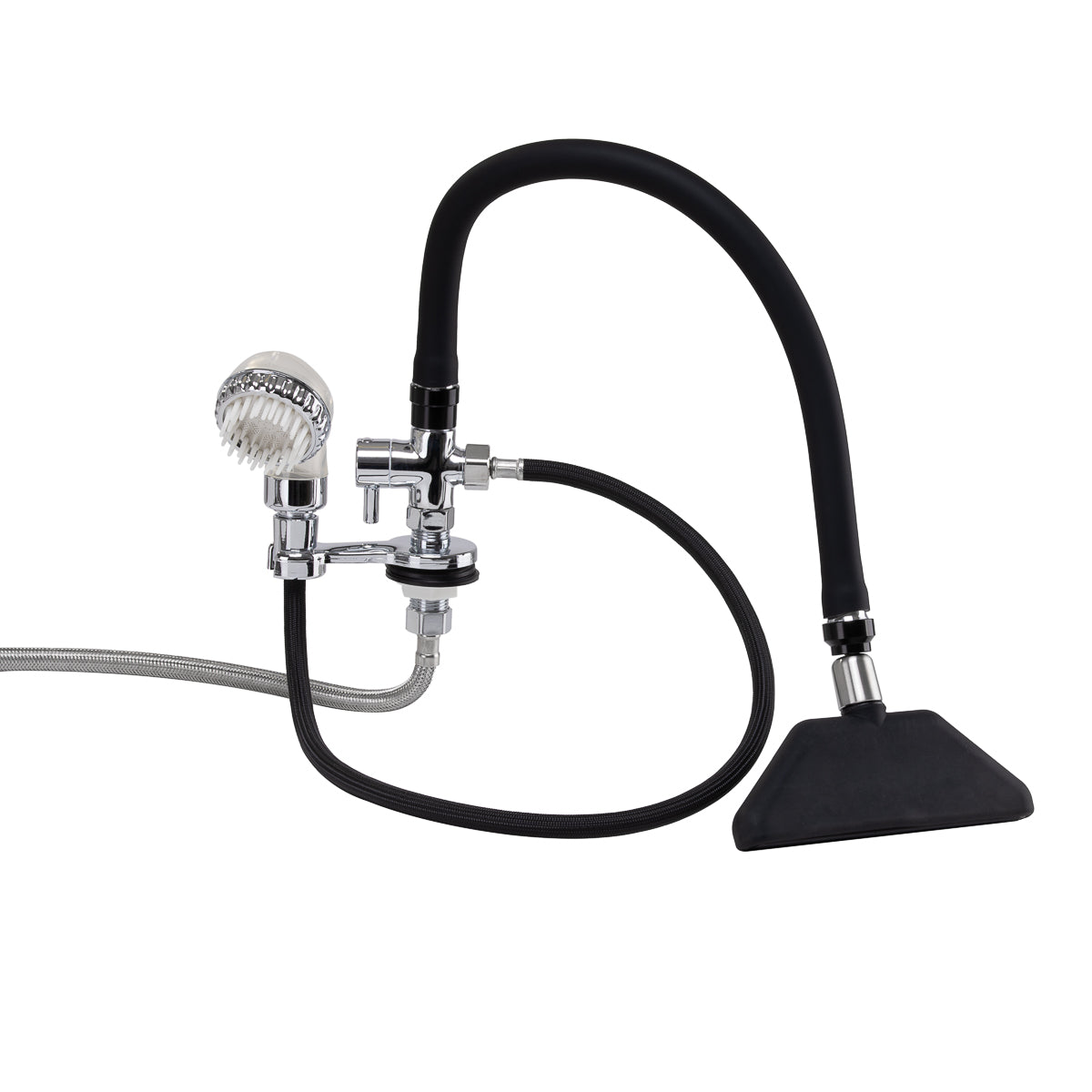 Смеситель-водопад с миксером, предназначенный для парикмахерских моек, является незаменимой частью профессионального салонного оборудования. Он облегчает удобное подключение воды к мойке и обеспечивает комфорт как парикмахеру, так и клиенту. Благодаря входящим в комплект стальным оплетенным соединительным шлангам, смеситель характеризуется высокой прочностью и устойчивостью к истиранию.