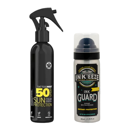 Уход за татуировкой включает профессиональные средства, предназначенные для использования после нанесения татуировки, чтобы поддерживать правильный уход за кожей в период заживления. Эти средства предназначены для применения в рамках процедур послетатуировочного ухода в тату-салонах и профессиональных условиях.