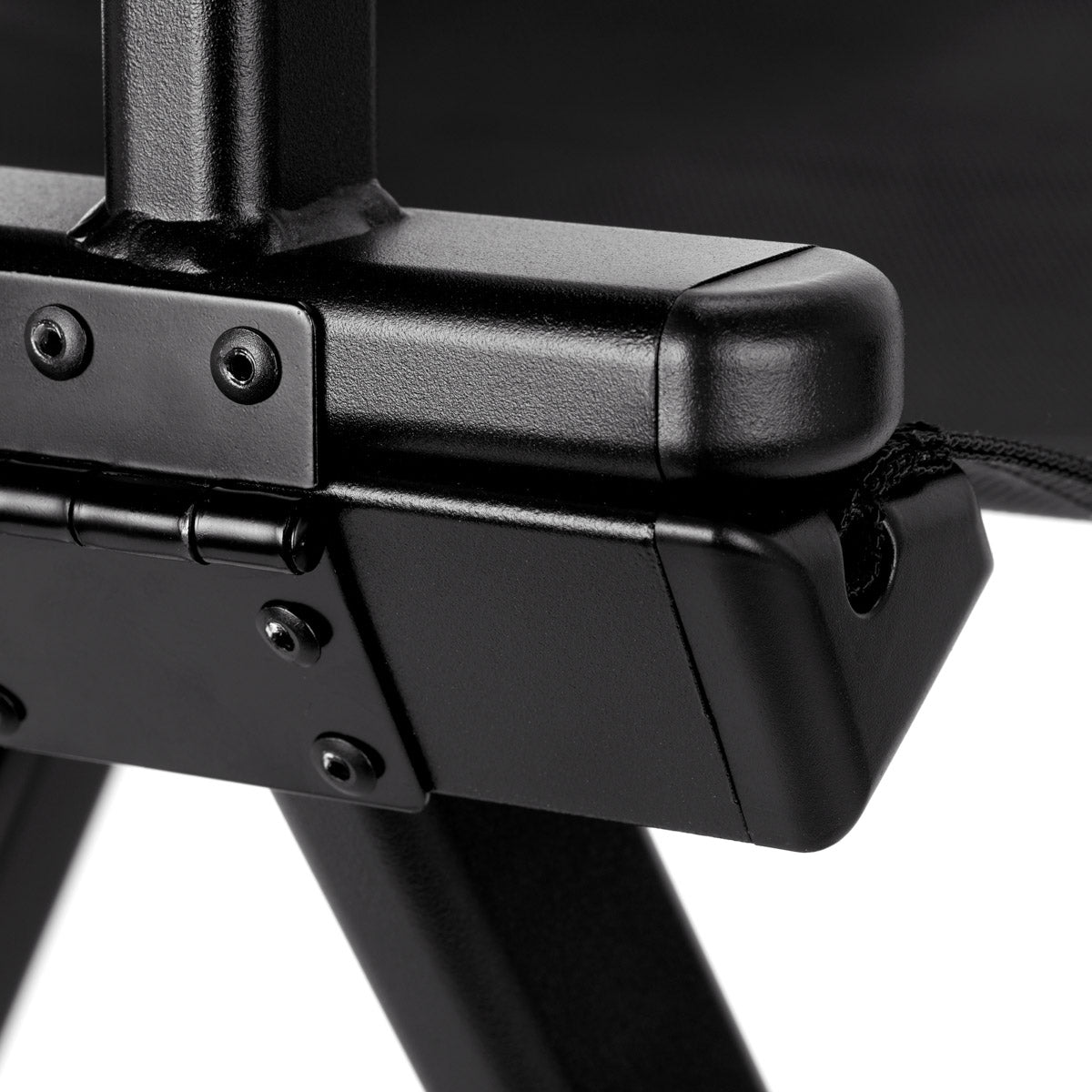 Кресло оснащено системой блокировки, которая обеспечивает устойчивость во время использования. После разблокировки его можно легко сложить, что значительно облегчает хранение и транспортировку. Минималистичные подлокотники и подножка шириной почти 40 см обеспечивают пользователю удобство и комфорт во время макияжа. Вместе со спинкой они позволяют занять правильное положение, что особенно важно при длительных процедурах. Применённые решения делают кресло чрезвычайно практичным, предоставляют много рабочего пространства для тех, кто оказывает мобильные услуги, и хорошо работают даже в самых необычных условиях.