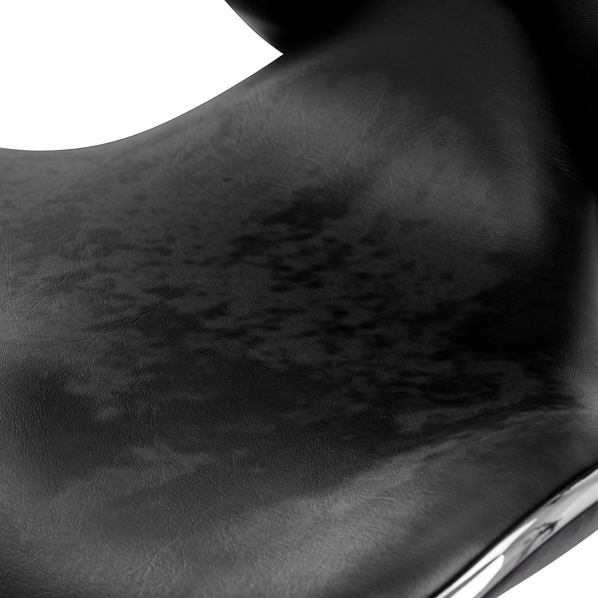 Пятизвездочная база обеспечивает устойчивость, даже при динамичных движениях или частой смене позиций. Оснащенный прочными колесами, он обеспечивает высокую мобильность, позволяя легко перемещаться по салону или офису. Обивка из синтетической кожи в оттенках черного не только прочная, но и легко очищается. Эстетичные хромированные элементы добавляют роскошный штрих и привлекают внимание. Уникальное сочетание элегантности и комфорта делает этот табурет незаменимым инструментом для любого профессионала.