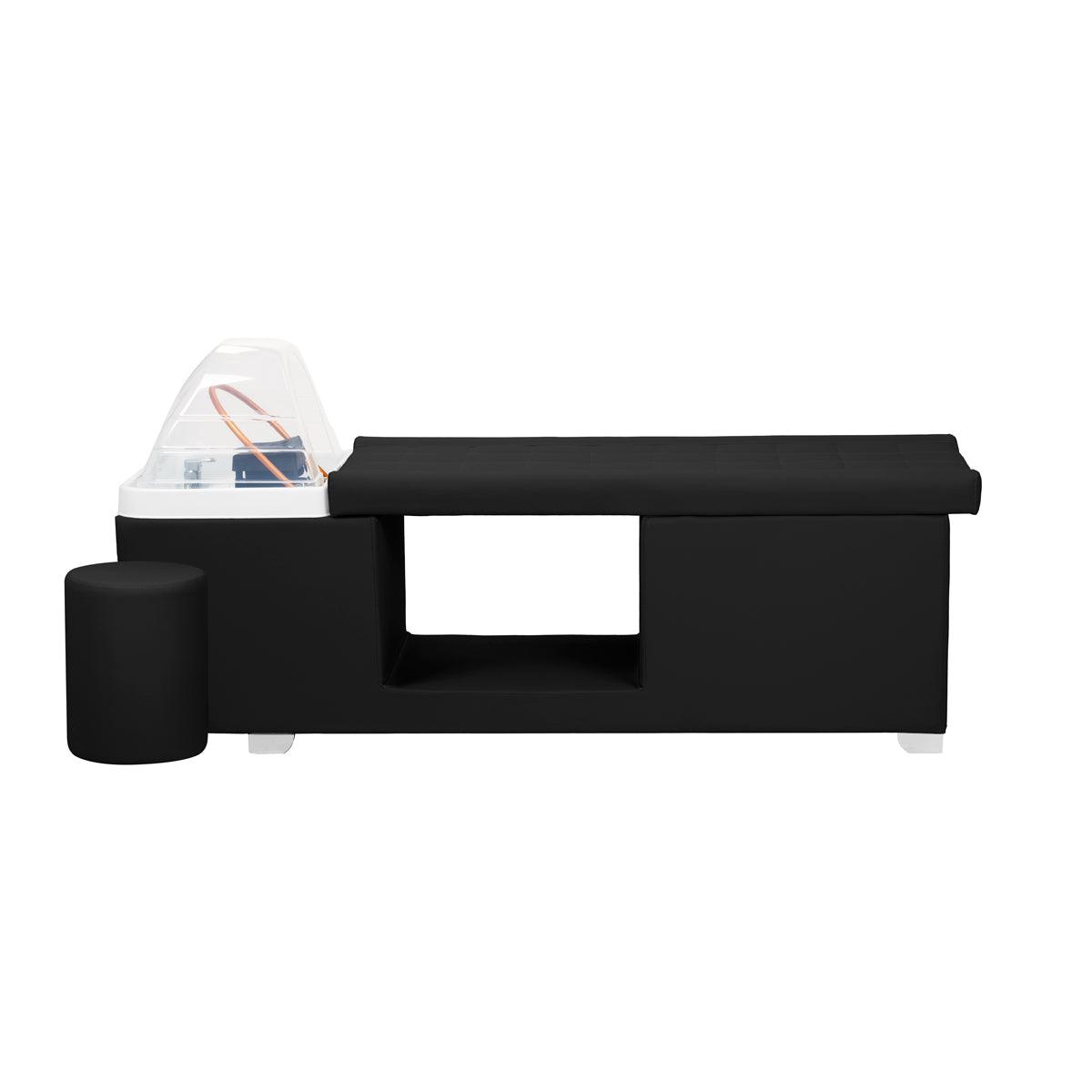 Кушетка Head Spa Maldives сочетает функциональность с современным дизайном. Прочный каркас, обитый элегантной искусственной кожей, обеспечивает устойчивую конструкцию. Эргономично профилированная поверхность в чёрных тонах, покрытая мягкой тканью, гарантирует полный комфорт во время процедур. Дополнительное пространство под кушеткой позволяет удобно хранить аксессуары, полотенца и косметику, делая её практичным и стильным дополнением любого профессионального салона красоты и оздоровления.