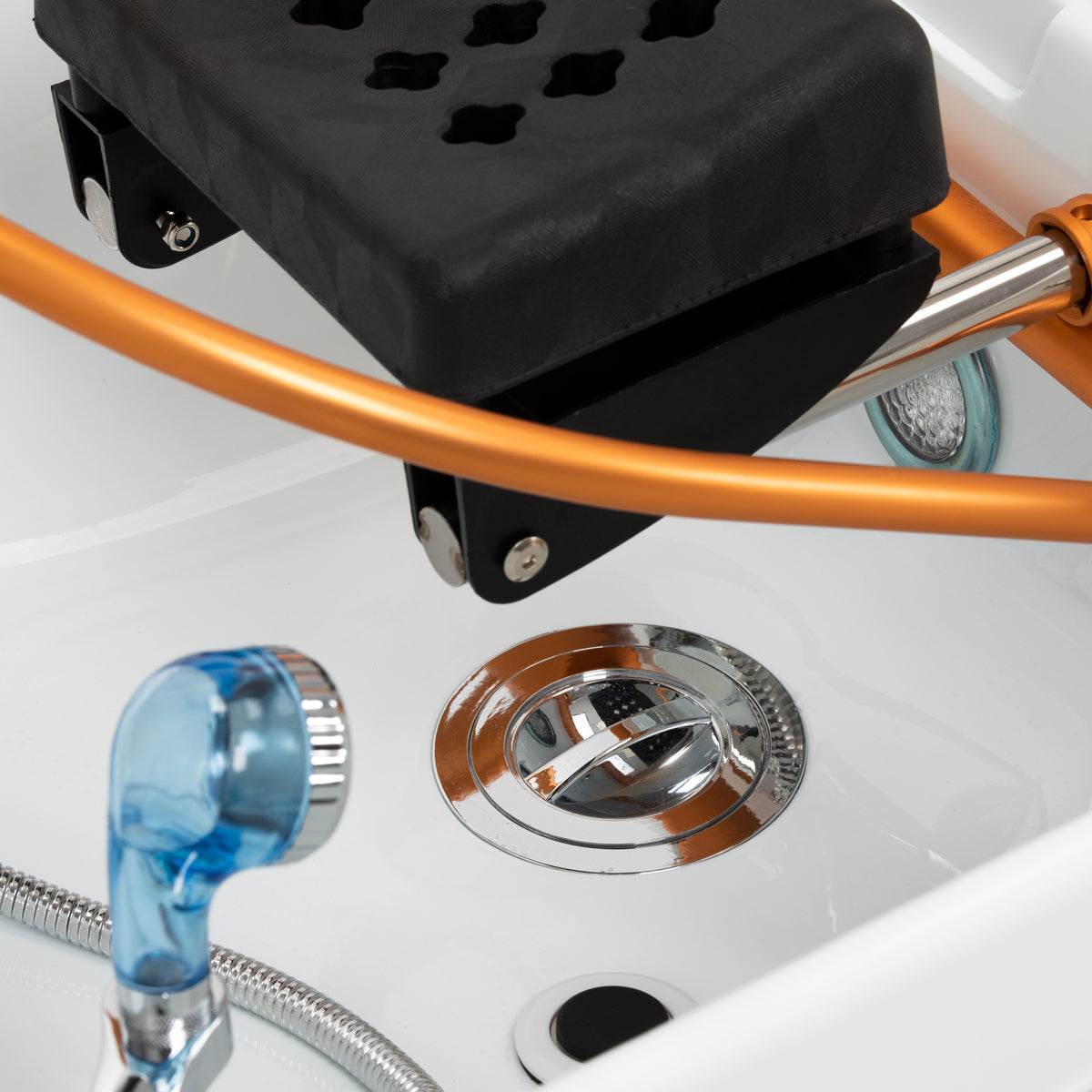 Мойка оснащена смесителем, позволяющим точно регулировать температуру воды в соответствии с потребностями клиента. Специальное место для душевой лейки повышает удобство, а хромированная пробка с особым фильтром обеспечивает контроль потока воды и поддерживает высокий уровень гигиены. Водоподвод расположен внутри основания, за тканью, эстетично скрывая коммуникации и придавая всему устройству изящный вид. Эргономично оформленная кушетка обеспечивает комфорт во время различных процедур красоты. Практичный пуфик дополняет комплект, повышая удобство персонала и расширяя функциональность устройства. Эти особенности делают мойку идеальной как для парикмахерских, так и для СПА-салонов.